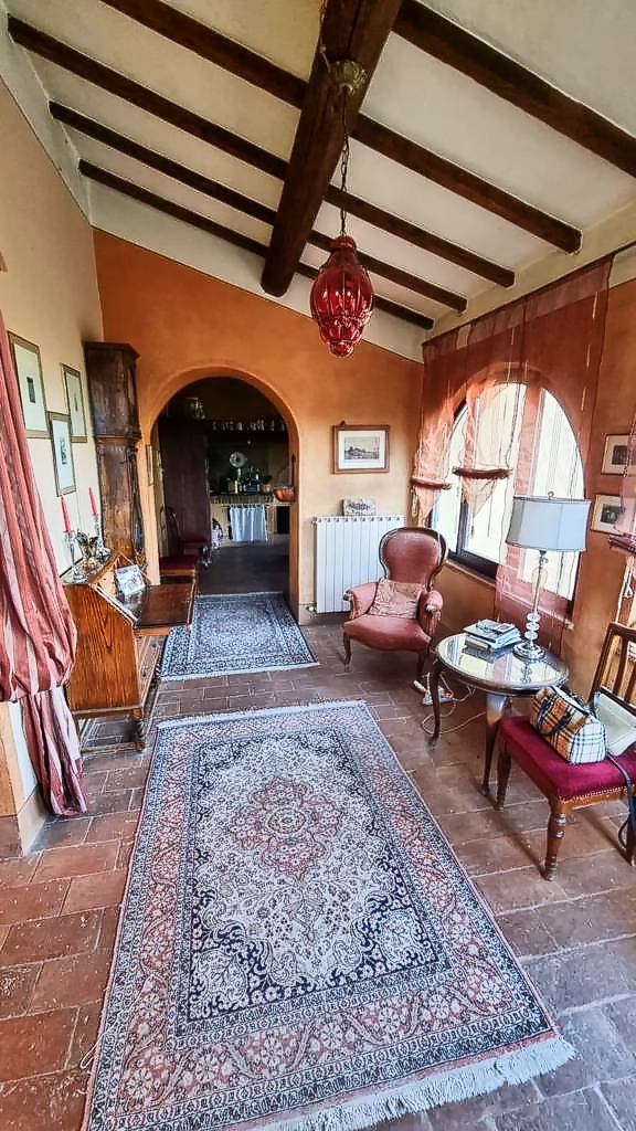 Beautiful farmhouse located on the picturesque hills of Val d'Orcia, at the foot of the majestic Mount Cetona, in Fonte Vetriana, a peaceful hamlet of Sarteano, in the province of Siena. This charming property dating back to the early 1700s, completely renovated in the 1990s, offers a total of 400 square meters distributed over two levels. On the ground floor, there is a comfortable living area with a veranda, 5 cozy bedrooms each with a private bathroom, and a practical laundry room. On the first floor, a spacious entrance opens onto a bright living room with a fireplace, a kitchen, a dining room, 3 bedrooms, one with a private bathroom, and two bedrooms with a loft, complemented by an additional bathroom with a bathtub. The property includes two outbuildings of about 60 square meters each, currently used as a summer kitchen and warehouse, and a charming 11x4 swimming pool positioned in the most panoramic point of the estate, equipped with a comfortable gazebo.